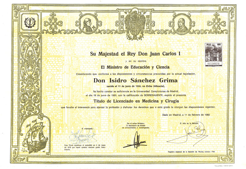 Soy licenciado en Medicina con Suma Cum Laude (sobresaliente) en 1978 por la Universidad Complutense de Madrid.