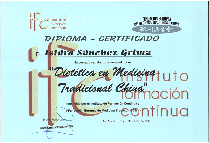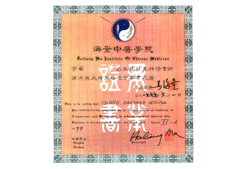 • Licenciatura en Medicina Tradicional China por la Universidad de MTC de Pekín. Desde octubre 1988 a junio del 1993.