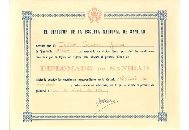 • Diplomado en Sanidad por la Escuela Nacional de Sanidad de la Univ. Complutense de Madrid.