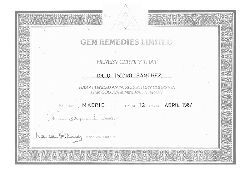• Formación en Homeopatia por gemas y minerales, en 1998.