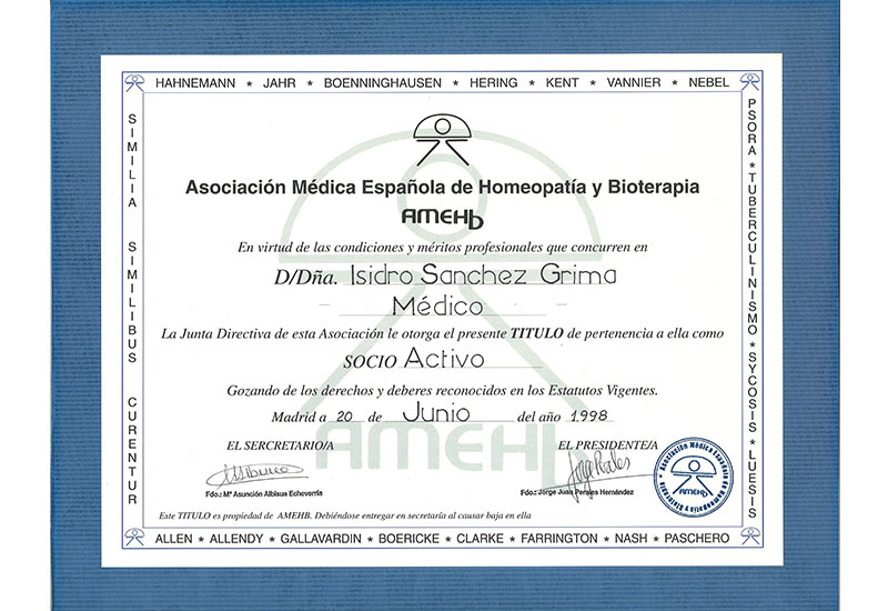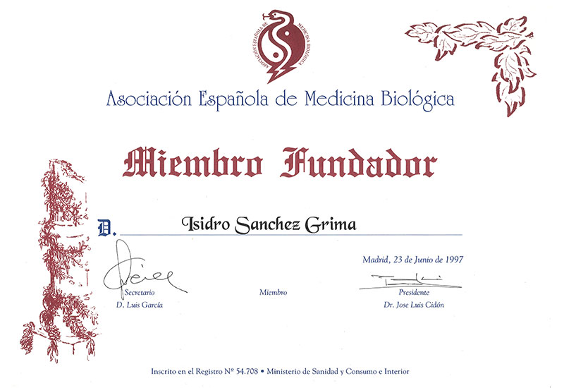 • Miembro fundador de la Asociación Española de Medicina Biológica en 1997.