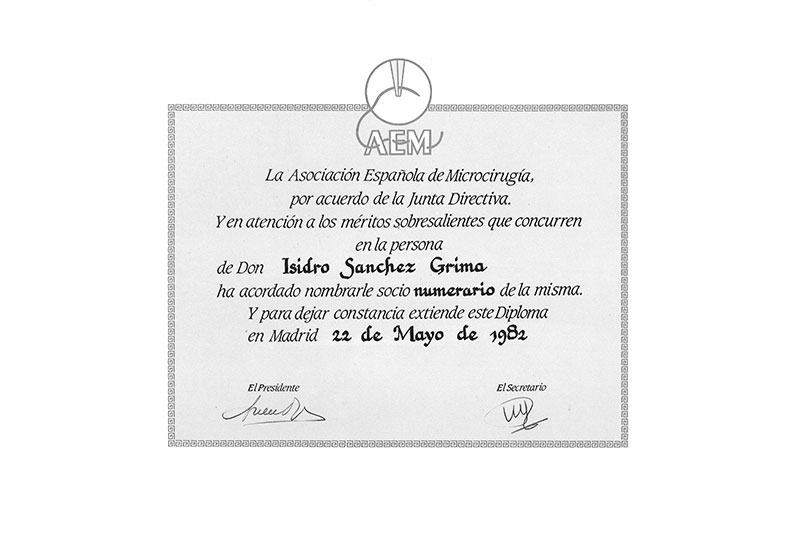 • Miembro de la Asociación Española de Microcirugía, en 1982.