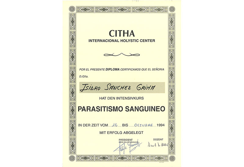 • Formacion en Parasitismo Sanguineo en la Citha, en 1994.
