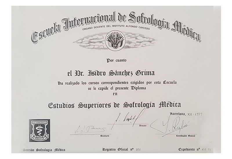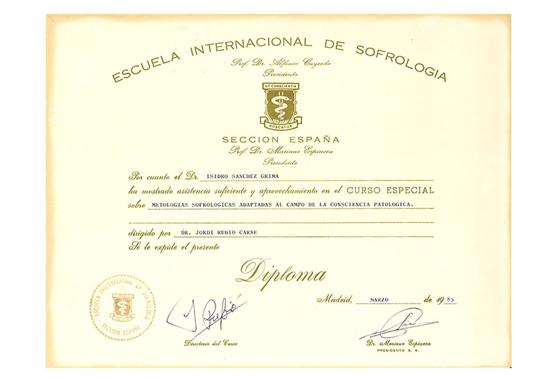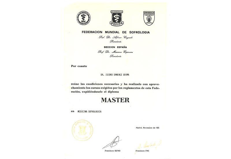 • Master en Sofrología Médica durante 3 años en el Centro de Sofrología Médica de Madrid.