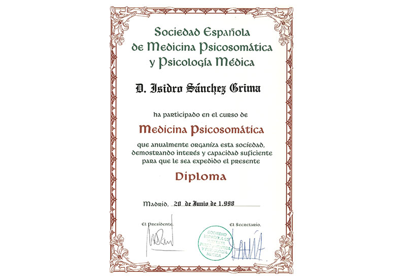 • Curso Académico de Medicina Psicosomática de la Asociación Española de Medicina Psicosomática y Psicología Médica, en 1998.