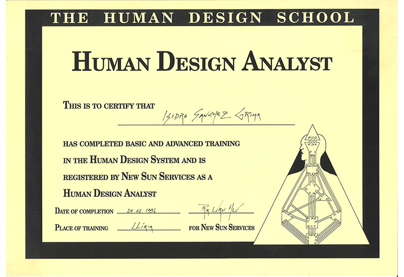 • Analista de Diseño Humano por la Human Design School, de Uru Ra, en 1996.